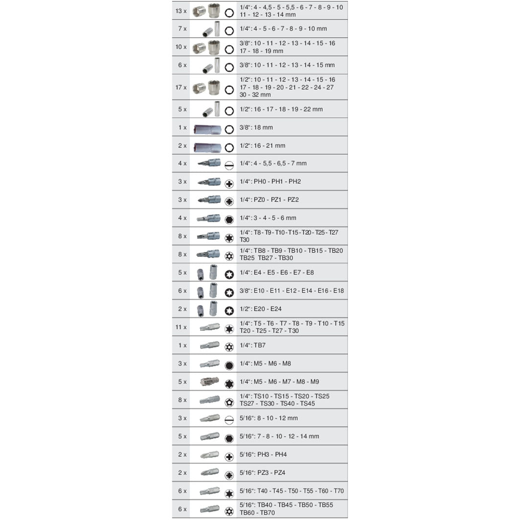 KS TOOL Coffret de douilles 1/4'' + 3/8'' + 1/2'' 179 pièces 917.0779