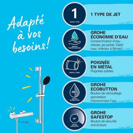 GROHE Mitigeur de douche thermostatique chrome Precision Start 34597001